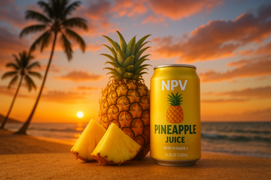 And in your hand? A can of NPV Pineapple Fruit Juice. Not just a beverage, but the bottled version of that Hawaiian moment you’ve always dreamed of.