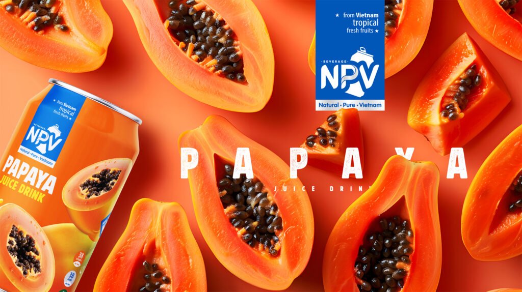 Discover the tropical sweetness of NPV Papaya Juice Drink 330ml Can, produced by NPV – one of the Top Vietnam tropical juice manufacturers. A smooth and exotic tropical fruit juice made for global export with OEM/ODM flexibility.