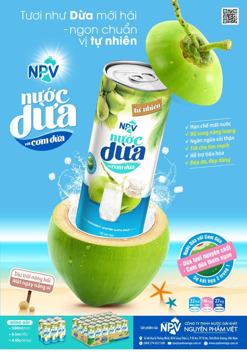 Được dòng Mekong bồi đắp phù sa, Đồng bằng sông Cửu Long được ví là vương quốc của trái ngon, quả ngọt. Từ vùng nguyên liệu dừa ở Đồng bằng sông Cửu Long, chúng tôi chọn những trái dừa đạt chất lượng đưa về nhà máy sản xuất. Vị ngọt thanh của nước dừa kết hợp với cơm dừa giúp bạn giải khát hiệu quả, nhất là những ngày nắng oi. Nước dừa có cơm dừa NPV được sản xuất trên dây chuyền khép kín, nhờ đó giữ được hương vị, khoáng chất và giá trị dinh dưỡng.