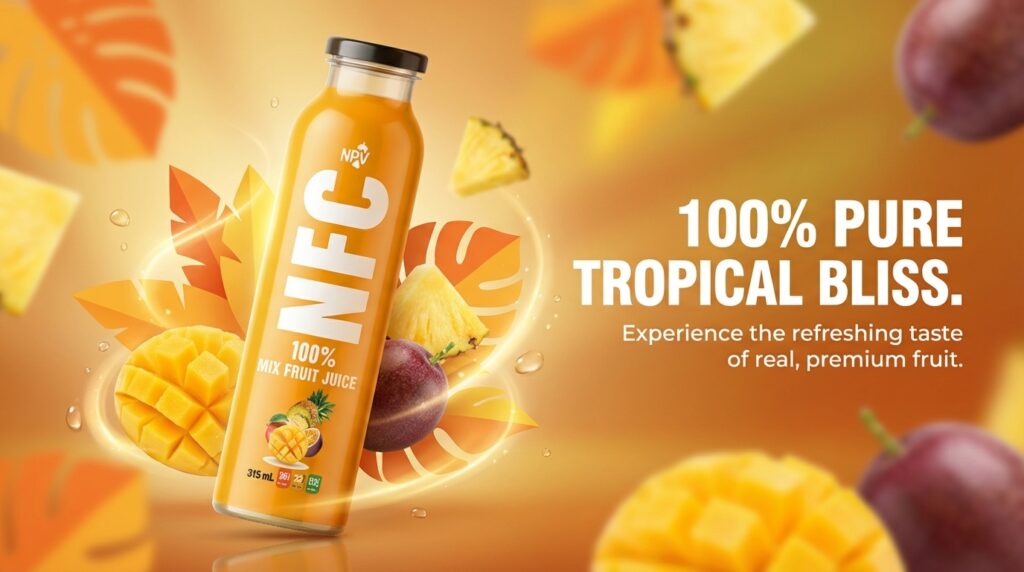 There is a particular kind of satisfaction that comes from a fruit juice blend done right. Not a juice where one flavor dominates and the others disappear, but one where every fruit shows up — where the sweetness of mango, the brightness of pineapple, and the tang of passion fruit each have their moment, and together they create something that is more interesting than any of them alone. That is the standard NPV Beverage set out to meet with the NPV NFC 100% Mix Fruit Juice — a 315ml glass bottle built around three of Southeast Asia’s finest tropical fruits, processed without concentration, and presented in a format that stands apart on any shelf it occupies.